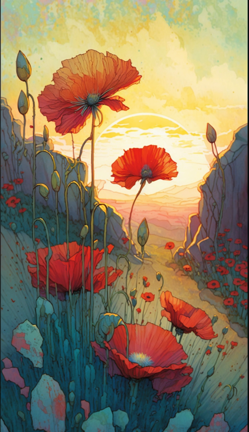 Celebrate the beauty of a blooming poppy field in this exquisite artwork. Inspired by artists like Warwick Goble, Erin Hanson, and Stephanie Law, this piece captures the essence of a beautiful sunrise amidst the vibrant red poppies and short grass. With intricate details and vibrant colors, this artwork brings the joy of nature to your phone case.