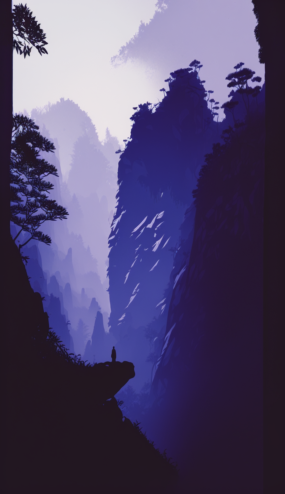 Experience the intriguing blend of minimalism and abstract art with the touch of a risograph effect. This unique piece captures a sense of mystique amidst fog and mist, inviting you to explore its intriguing depths.