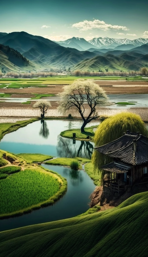 Behold the grandeur of a tall spiraling citadel reaching into the aurora borealis of the night sky. This artwork creates a captivating contrast between architectural wonder and natural cosmic beauty.
