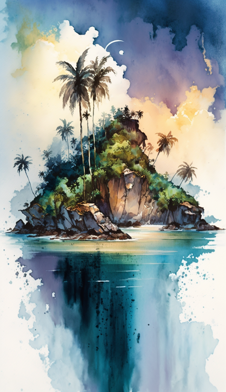 Escape to a tropical island paradise through the mesmerizing watercolor painting. This artwork captures the allure of exotic landscapes and invites you to immerse yourself in the beauty of nature.