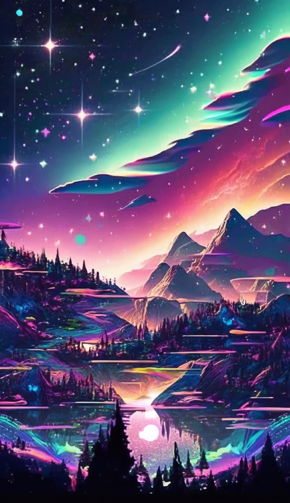 Explore the abstract trippy plains landscape with a touch of Lisa Frank's whimsy. The surreal beauty of this piece, captured in an AR 9:16 frame, brings a burst of creativity to your surroundings.