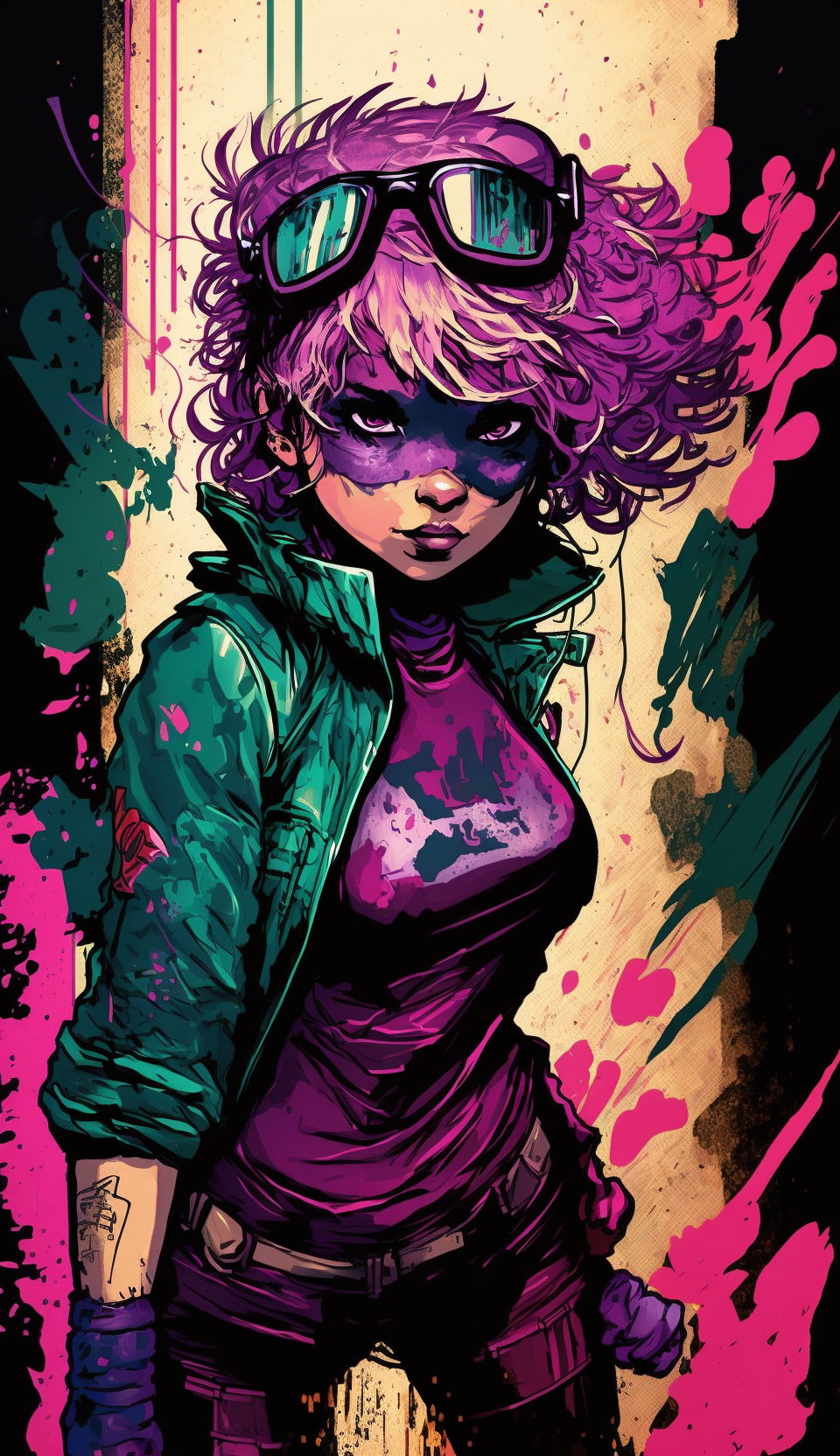 Meet Hit Girl from Kickass in a supercool and whimsical comic art style. The artwork captures her vibrant personality and dynamic energy. This portrayal showcases her powerful presence and iconic aura.