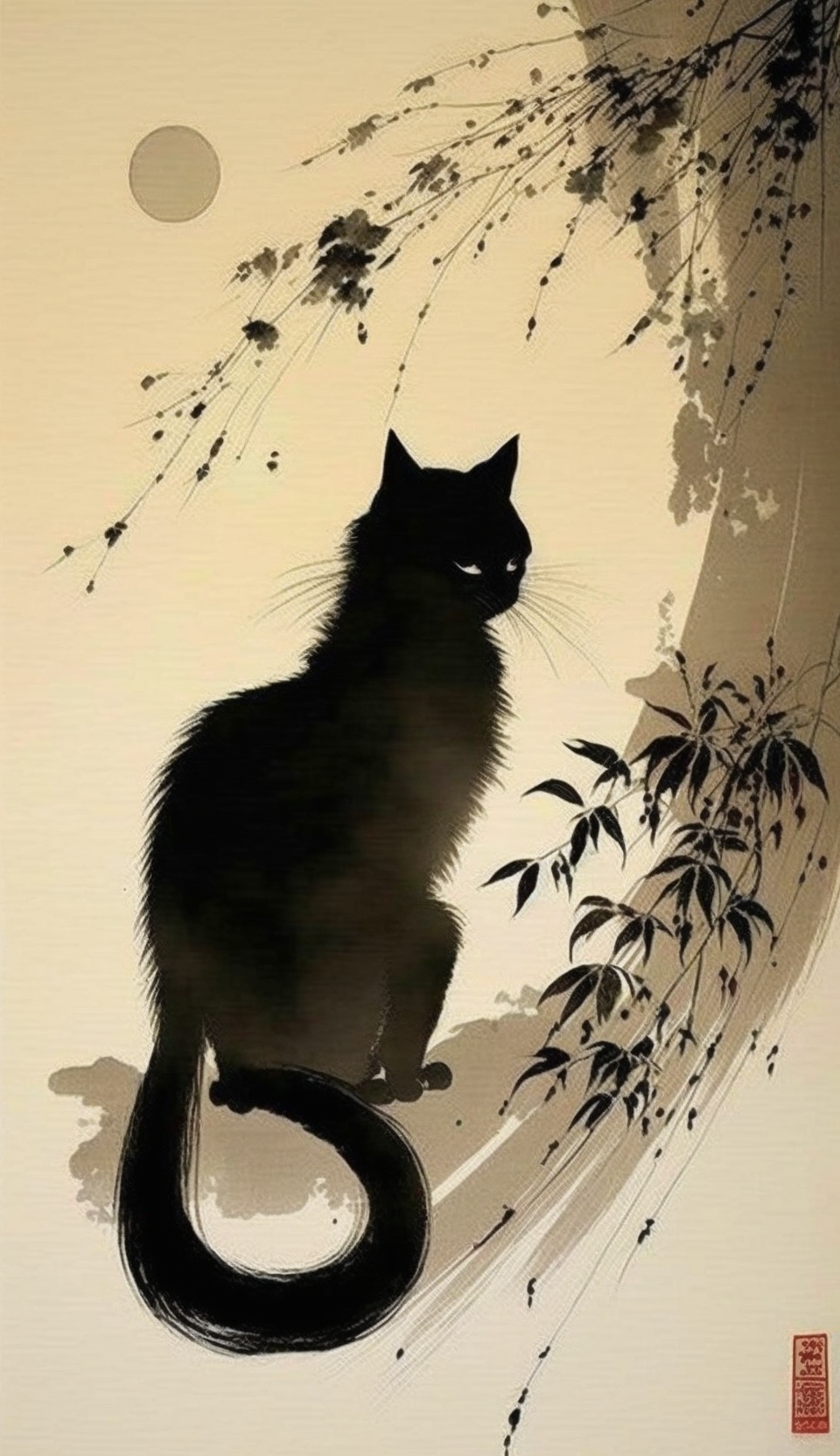 Embrace the simplicity and elegance of Japanese artistry with 'Sumi-E Cat.' This artwork, painted in the traditional Sumi-E style, features a black cat in a captivating and minimalistic manner. Capturing the feline grace in a way that resonates with the essence of the art form.